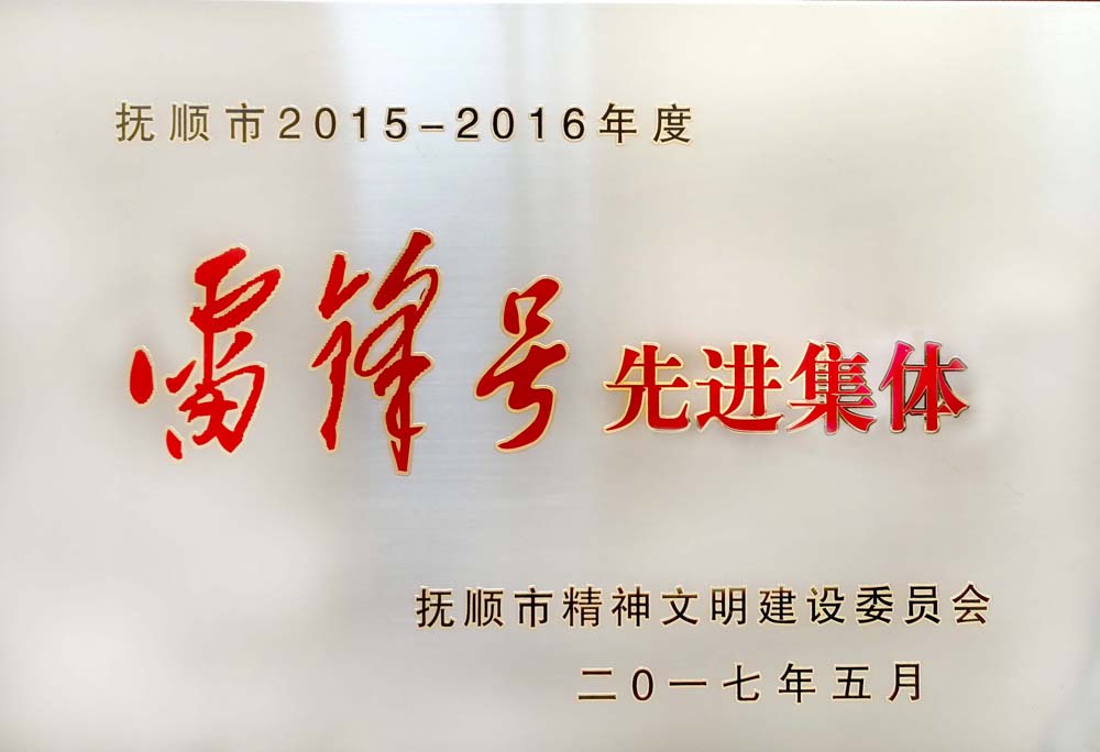 2017年5月,我公司被撫順市精神文明建設(shè)委員會評為2015-2016年度撫順市“雷鋒號”先進(jìn)集體光榮稱號。