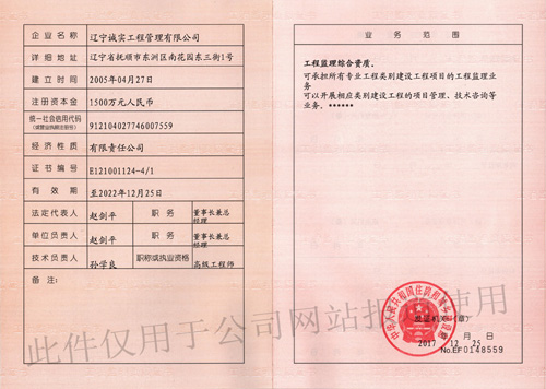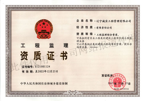 2017年12月25日《中華人民共和國住房和城鄉(xiāng)建設(shè)部公告第1783》中發(fā)布了題為《建設(shè)部關(guān)于核準(zhǔn)2017年度第十四批建設(shè)工程企業(yè)資質(zhì)資格名單的公告》,自此,我單位單位由過去的五項(xiàng)甲級工程監(jiān)理資質(zhì)晉升為“工程監(jiān)理綜合資質(zhì)”。這標(biāo)志著我公司一直持續(xù)保持著良好、穩(wěn)步的發(fā)展勢頭,朝著項(xiàng)目管理公司轉(zhuǎn)型的路上不斷挺進(jìn)。成績的取得,不僅凝結(jié)了公司領(lǐng)導(dǎo)層的心愿與艱辛,更是全體員工矢志不渝的追求和不懈努力的體現(xiàn)。