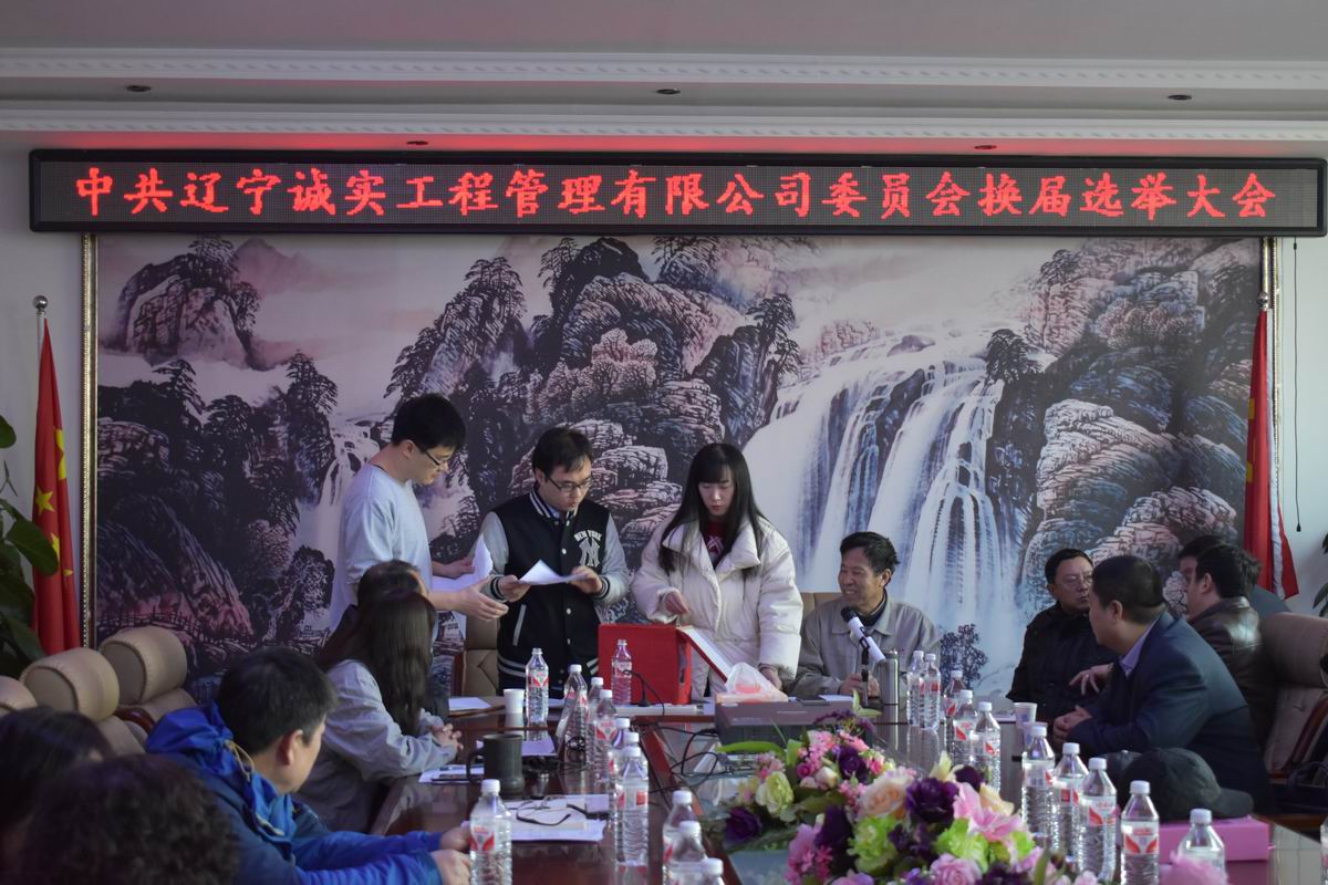 2018年2月7日上午十點(diǎn),在公司一樓會議室召開了《中共遼寧誠實(shí)工程管理有限公司委員會換屆選舉大會》,28名黨員同志參加了此次大會,會議由黨委副書記馮玉琢主持,新?lián)釁^(qū)委組織部任部長及馮疆偉出席了此次會議。