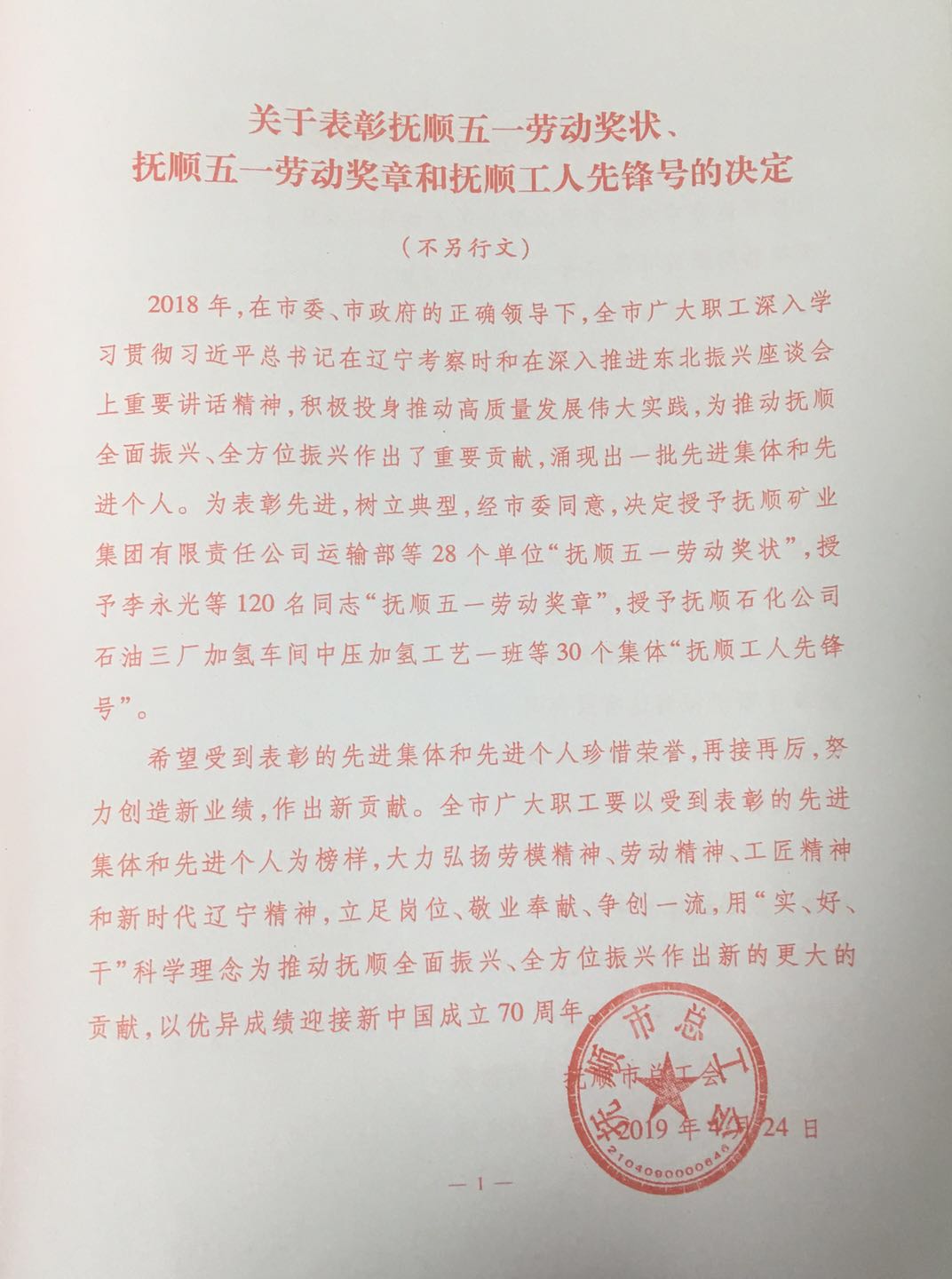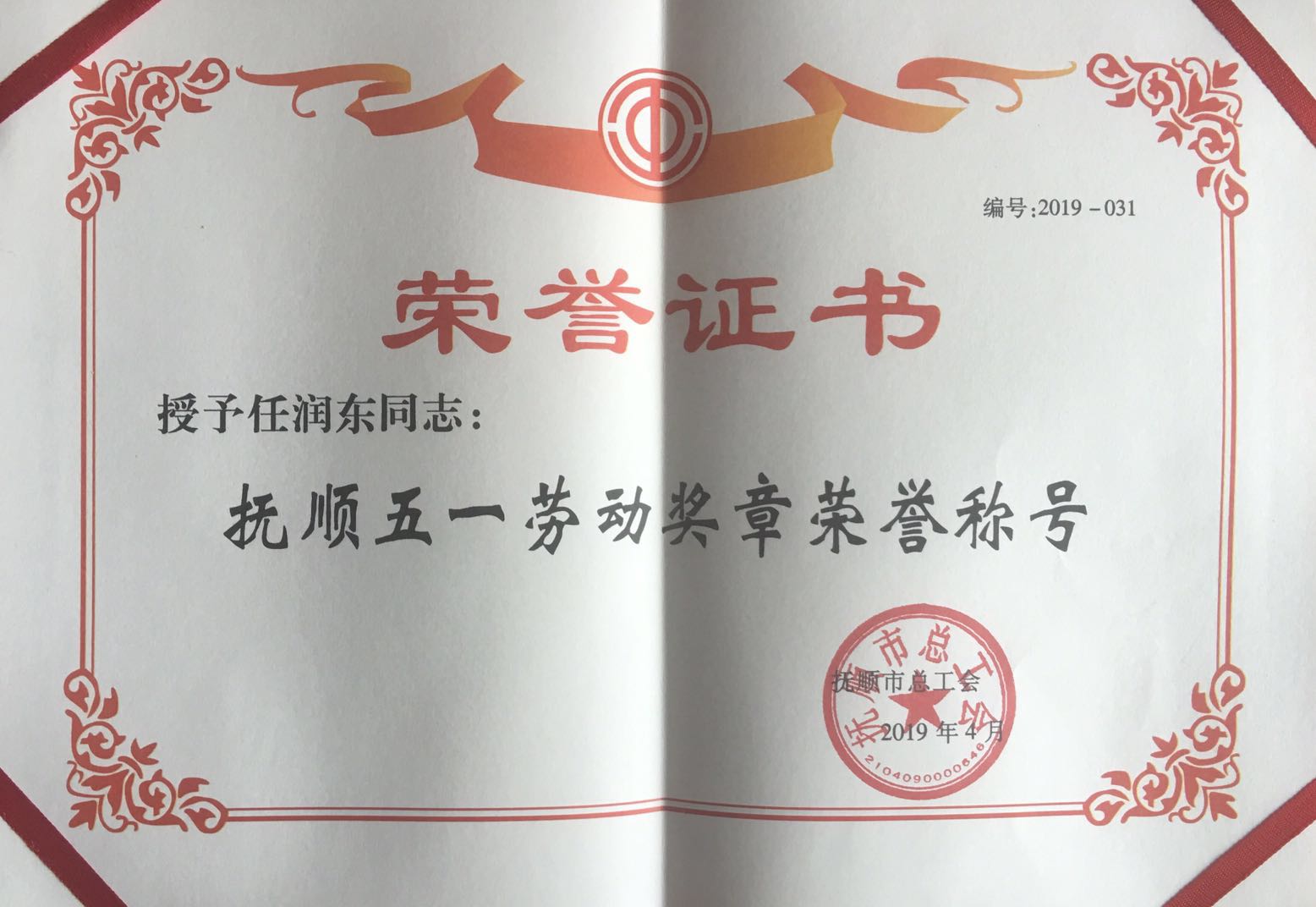 熱烈慶祝我單位任潤東、郭建偉兩位同志榮獲“撫順五一勞動獎?wù)隆睒s譽(yù)稱號