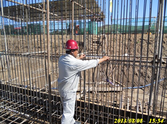 土建監(jiān)理現(xiàn)場檢查壓縮機廠房基礎環(huán)墻鋼筋綁扎質(zhì)量