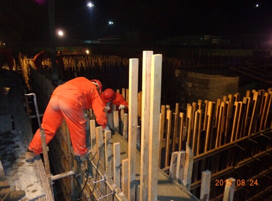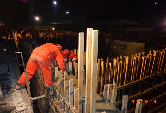 壓縮機廠房基礎環(huán)墻混凝土夜間澆筑施工現(xiàn)場